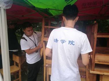 新成员从五湖四海陆续到达“北国春城”,准备迎来与吉大法院的第一次会面。为了让新生顺利办理报到手续,更好地为新生及其家长提供帮助,协助各班班代做好迎新工作,生管会的工作人员在老师的指导与支持下,开始着手迎新场地的布置工作。