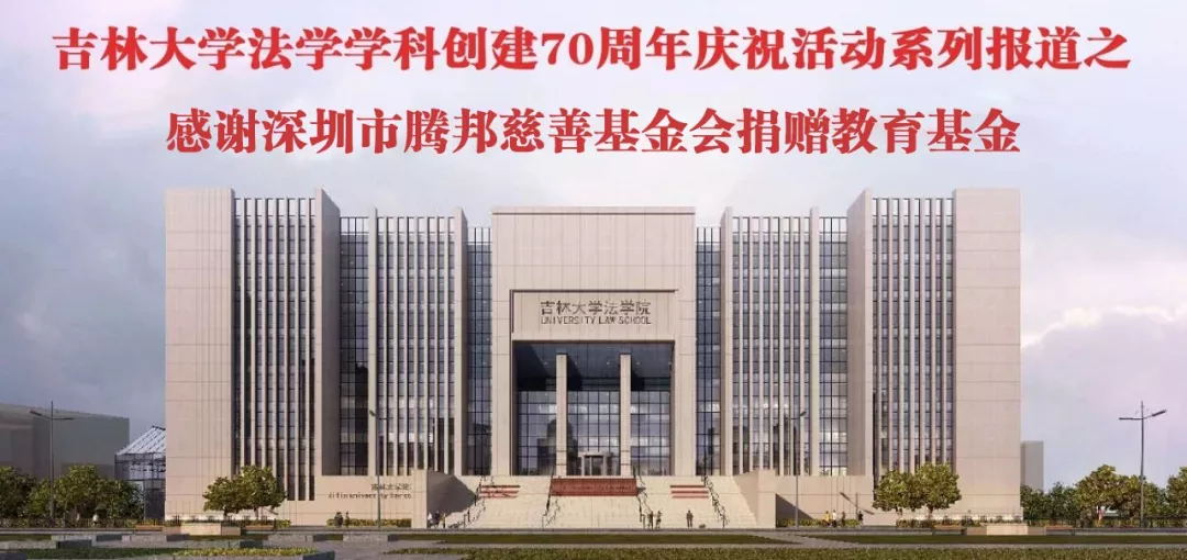 深圳市腾邦慈善基金会,是中国第一家由高端商业服务企业发起成立的公益基金会。秉承"关注慈善,回报社会,担当责任,促进和谐"的宗旨,多年来积极参与对各类弱势群体的救助活动,累计捐赠善款逾亿元。在吉林大学法学学科建设七十周年之际,深圳市腾邦慈善基金会捐赠人民币一百万元设立“吉林大学腾邦新青年法学奖助学金”,每年资助20名优秀法学学子。“吉林大学腾邦新青年法学奖助学金”的设立无疑促进了吉大法学教育的发展,激励吉大法学继往开来,再创佳绩。