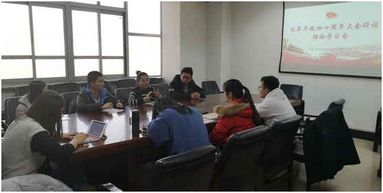 本科生党支部组织开展了“学习习近平总书记在庆祝改革开放四十周年大会重要讲话”主题学习会。与会师生充分探讨了改革开放四十周年的风雨历程和丰硕成果,认真学习领会了改革开放四十周年大会讲话的深刻精神。