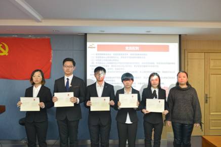 35名新党员在领誓人骆旷达同志和监誓人徐杰同志的带领下,一起面向党旗,举起右手,向党旗宣誓,新党员们在宣誓中表达了自己的决心。宣誓结束后,郑诺同志宣读了《党员的权利和义务》,每位党员一边听着宣读,一边将权利义务牢记在心。希望新党员能够在今后坚持履行党员义务,行使好党员权利。