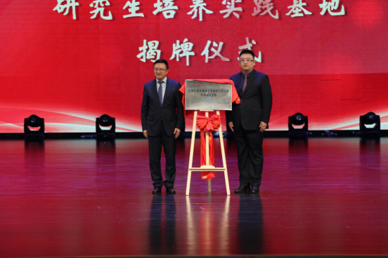 研究生培养实践基地揭牌仪式上,吉林大学副校长蔡立东、长春嘉诚信息技术股份有限公司总经理齐井春、聚法科技(长春)有限公司董事长、CEO梁海强、长春市把手科技有限公司创始人刘思铭共同为研究生培养实践基地揭牌;长春嘉诚信息技术股份有限公司检察事业部总经理崔放代表实践基地致辞。