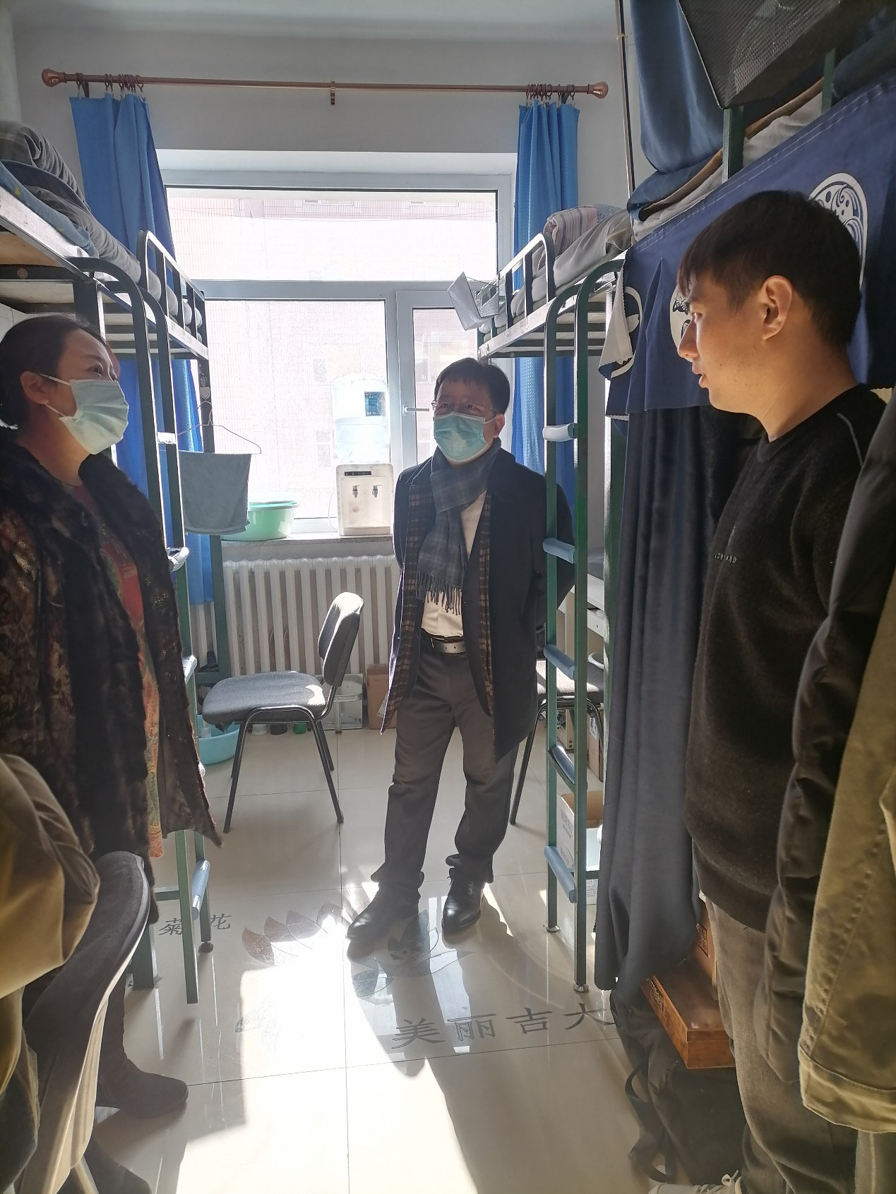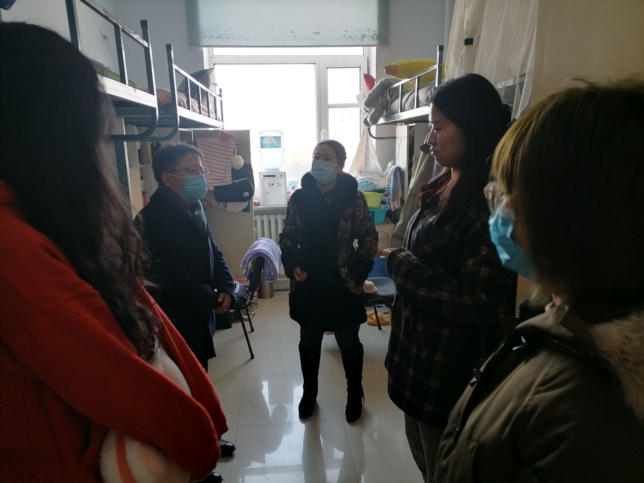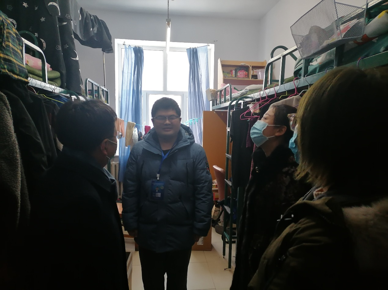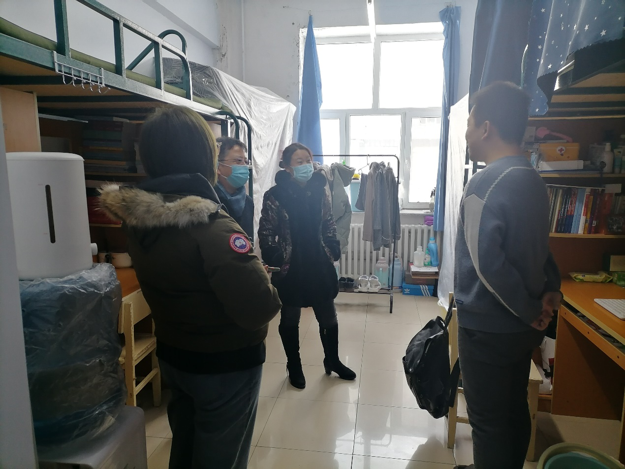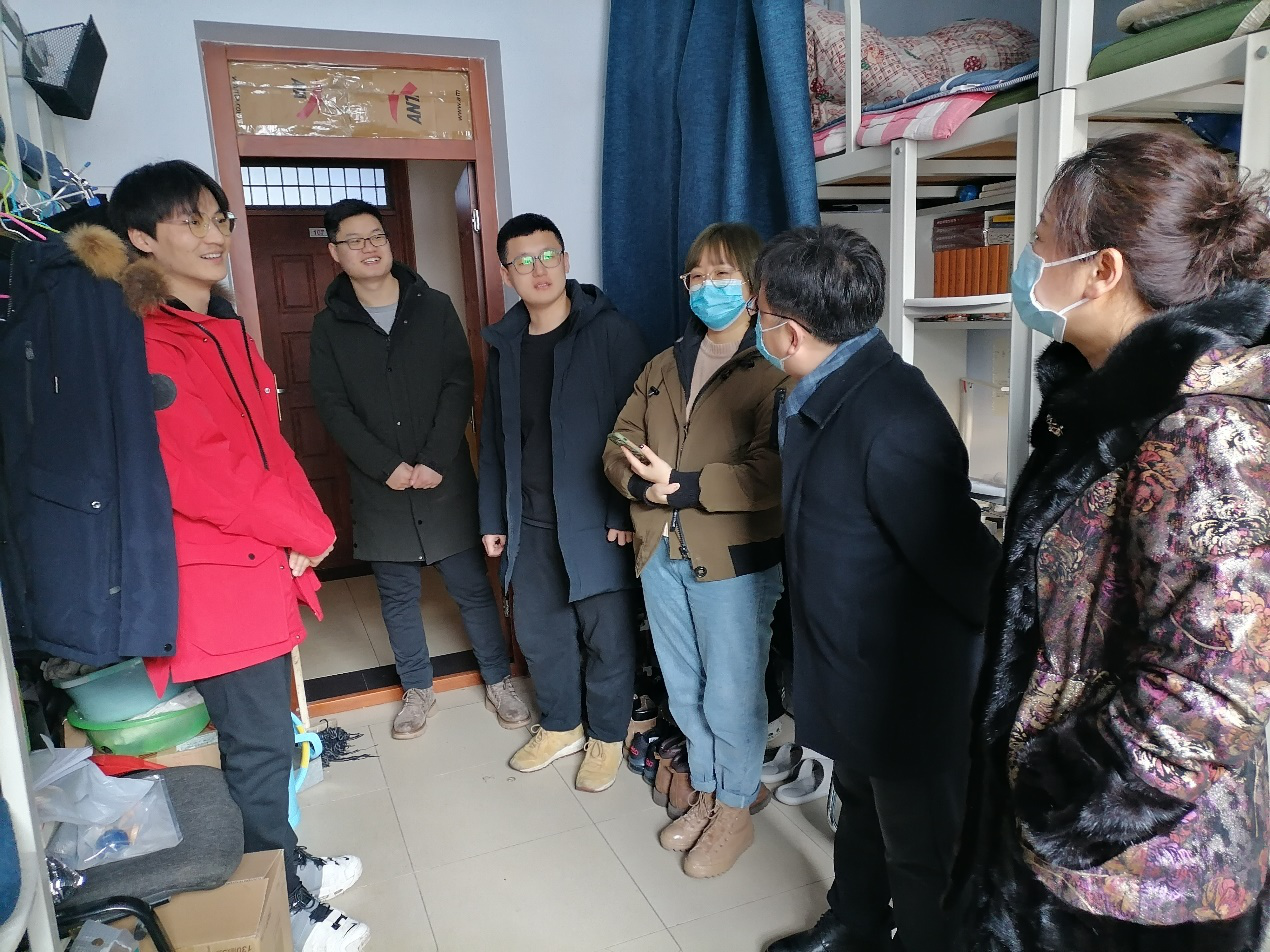 徐杰副书记、曹险峰副院长与学生们亲切交谈,详细地了解了学生们的年级、寒假留校原因以及家乡的疫情情况,贴心地问候学生们宿舍供暖是否充足、食堂饭菜是否可口、是否已经为父母家人送上了节日的祝福。了解到多数学生是为了撰写学位论文而选择留校过春节,老师们亲切地询问了学生们的学习地点和论文的写作进度,嘱托学生们要劳逸结合,在论文撰写的过程中做好规划、调整心态、保证好饮食和作息,如果学生们有什么困难,要及时与学院沟通,力争让大家过一个温馨的春节。最后,老师们嘱咐学生要注意人身安全和寝室防火防电安全,平安祥和地度过寒假。