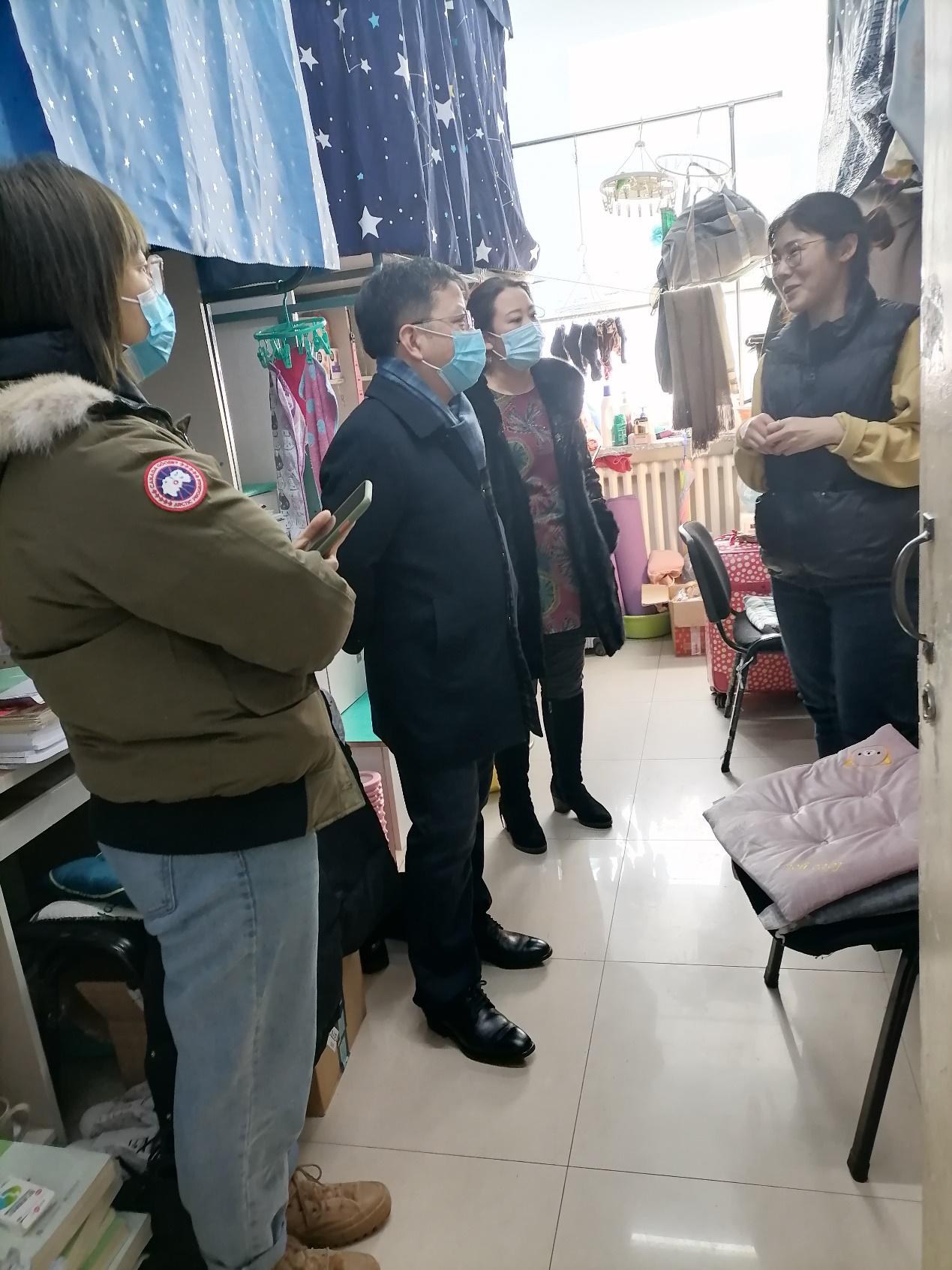 党委副书记徐杰老师、副院长曹险峰老师、研究生辅导员徐晋老师走访慰问留校研究生,为他们送去诚挚问候和新春祝福,让留校过春节的学生们感受到了学院浓浓的爱。