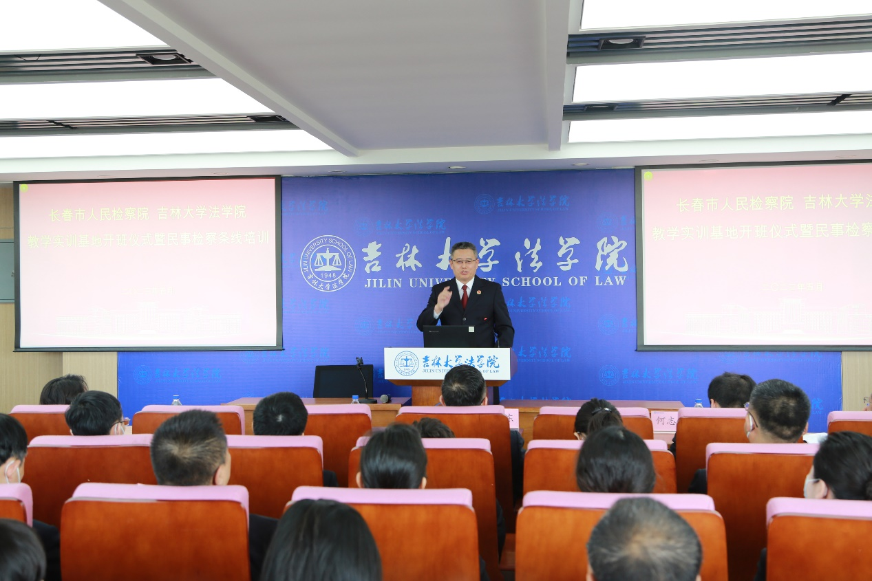 蔡立东副校长在致辞中对全体检察干警的到来表示诚挚欢迎,并对长春市检察院长期以来对吉林大学的支持表示衷心感谢。他指出,为更好满足党和国家对法治中国建设的高位要求和热切期盼,法学教育和理论研究需要司法实践的支撑,检察工作的发展同样需要理论与实践的深度融合,检校双方有着共同需求和良好的合作基础。希望以教学实训基地共建为契机,进一步强化在人才培养、理论实践、资源信息等方面的交流协作、互惠互助。相信双方的合作能够取得更加丰硕的成果,以高质量检校共建助推法学教育和检察工作共同发展。