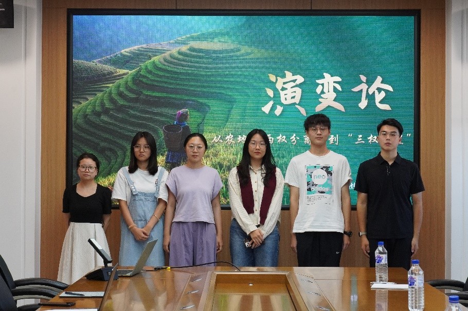 周炜宏团队从演变论角度,以从农地“两权分立”到“三权分置”为主题展开汇报。从过去、现在、未来三个维度深入阐述,全面把握“两权分立”到“三权分置”从保障生存到促进经济的递进关系。团队从现实故事初探土地承包经营权,介绍了两权分立的历史沿革、制度困境,接着介绍了三权分置立法沿革、重要意义,然后通过广东省阳江市阳东区的例子生动论述未来改革走向,最后总结了三权分置未来发展方向与面临的挑战。