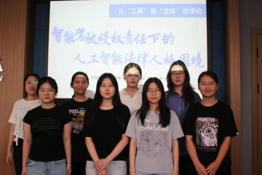 付海霖团队聚焦智能驾驶领域,以智能驾驶侵权责任下的人工智能法律人格困境为主题展开汇报。团队以“3·18美国自动驾驶车辆致人死亡事故案”切入,揭示了传统侵权责任框架难以应对算法决策的独特挑战,一方面从权利能力、行为能力、责任能力三要素分析AI成为法律主体的可能性;另一方面解析四种归责路径,提出“多层次责任体系”——即短期通过“生产者责任追溯机制+强制保险制度+专项补偿基金”应对困境,长期则朝向设立“有限法律人格”进行前瞻性布局。