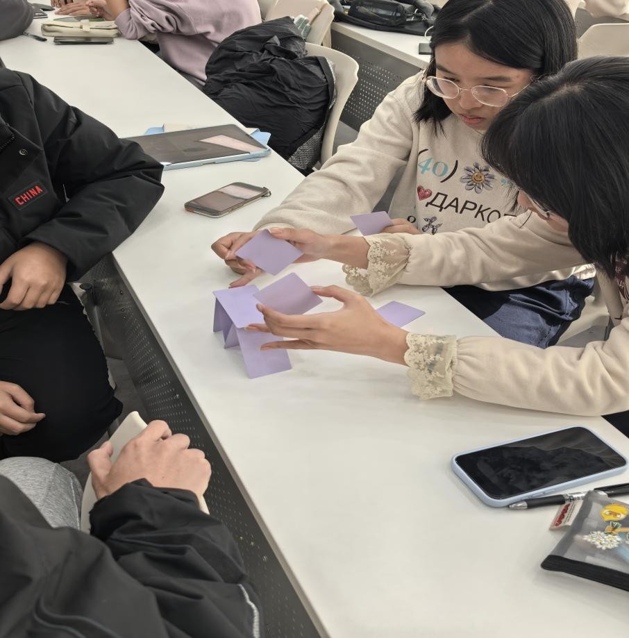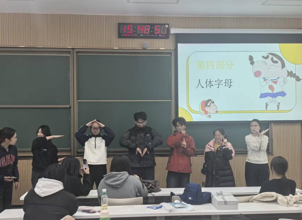 随后是“游戏部分”,在“人体字母”游戏中,各组用身体创意拼摆单词,在欢笑中培养默契;“同舟共济”游戏通过缩小“纸船”挑战,让大家体会到团队配合的重要性;“众志成城”叠纸塔游戏,展现了分工协作与创新思维的力量;“快乐传递”游戏用心意卡传递真诚赞美。最后以“绘制团体树”定格温暖瞬间。整场活动打破陌生壁垒,凝聚班级向心力,为新生开启温暖的大学生活篇章。