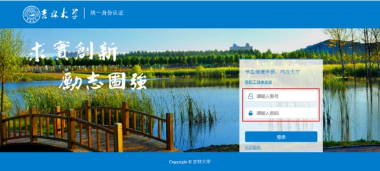在学生健康申报、网版大厅入口使用邮箱帐号密码进行登录,如下图所示: