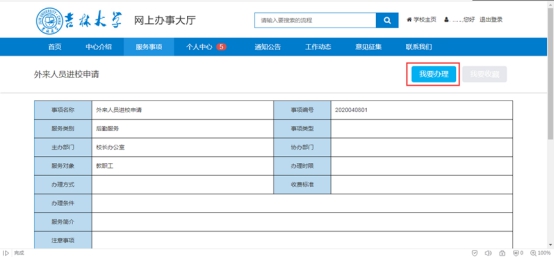 网上办事大厅校外人员入校申请操作指南