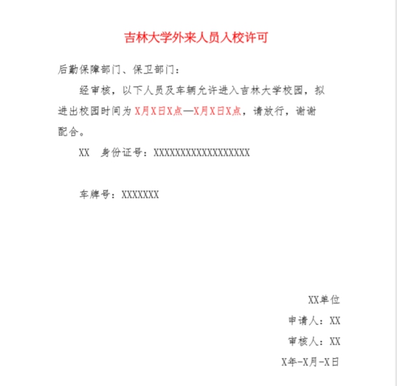 7、《吉林大学外来人员入校许可》下载样式如下图所示: