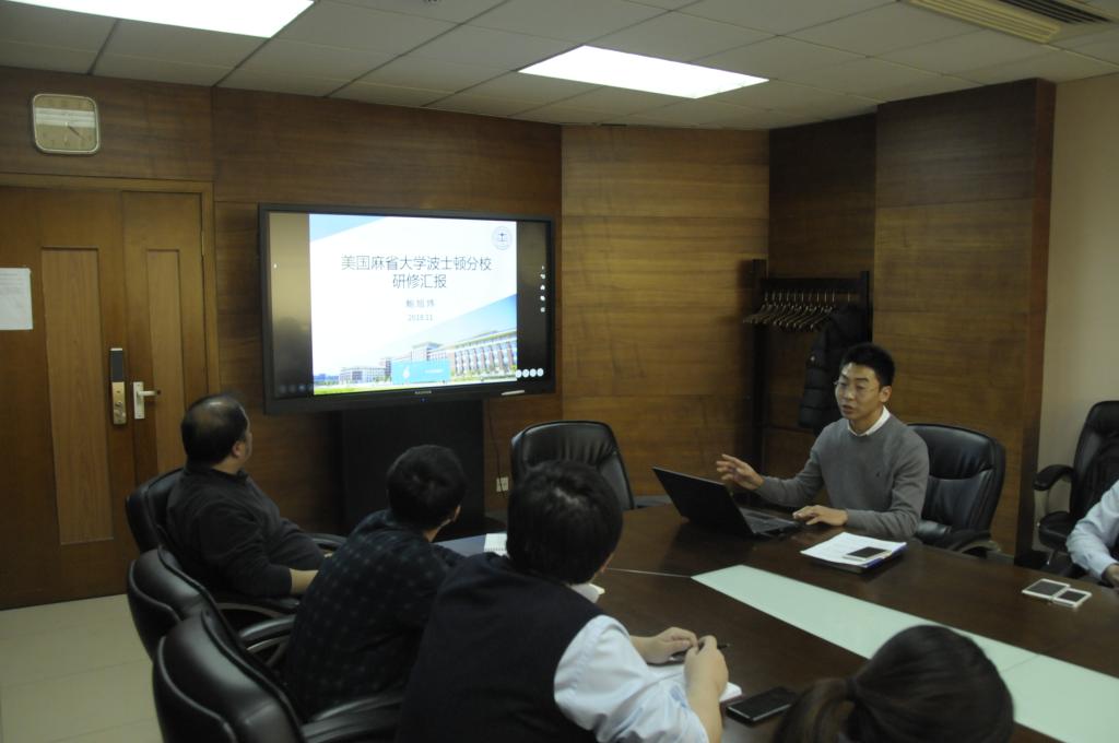 院长助理陈殿友以“学习十九大报告关于《全面推进依法治国之大问题》的心得体会”为题,从法的定义出发,着重讲述了依法治国基本方略的提出和发展、依法治国基本方略的基本内涵和全面推进依法治国的时代意义,并就如何大力推进全民守法提出了自己的看法。教务办公室主任鲍旭炜分享了在美国麻省大学波士顿分校的研修经历,围绕组织架构、基础设施、办学重心、教学理念、营销思维和科技平台等六个方面,介绍了美国公立大学的特色之处,并结合线上赌博