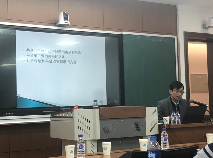 谢增毅研究员的讲座主要分为“共享(平台)经济对劳动关系的影响”、“平台用工劳动关系的认定”、“社会保险和平台监管制度的完善”三个部分。首先讲述了共享(平台)经济的发展情况、概念特征和发展趋势,总结了“平台自营模式”、“信息服务模式”、“新型共享模式”、“多元混合模式”四大平台模式,分析了共享经济下用工的新特点、平台工人劳动保障存在的问题和面临的挑战。第二部分讲述了传统劳动关系概念和判定理论的核心,介绍了德国的人格从属性理论和美国的控制标准与经济现实标准理论,总结了传统劳动关系判定标准理论的主要特征,分析了互联网平台用工的劳动关系判定实践及面临的挑战,并探讨了传统劳动关系判定理论在现阶段的生命力问题、劳动关系判定方法的改进和我国相关规则的完善。第三部分谈到了社会保险和平台监管制度的完善,指出除了劳动法,还应通过完善社会保险制度以及网络平台监管制度等多角度保护网络平台工人的权益。随后,谢增毅研究员耐心解答了同学们的提问,就“劳动关系、雇佣关系、劳务关系是否可涵盖网络平台用工所产生的关系”、“我国是否可引入类似德国类雇员等介于劳动者与非劳动者之间的第三方概念”、“如何认定从属性”、“将网络平台用工的关系认定为劳动关系后,如何适用劳动法”等问题与同学们进行交流。最后,冯彦君教授对本次讲座进行了总结与延伸。同学们在这次学术盛宴中受益匪浅,本场讲座圆满结束。