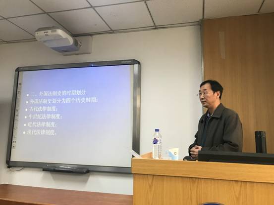 在第一天的授课中,刘艺功教授先后为同学们讲解古希腊、古罗马和中世纪的法律思想。刘教授首先从古希腊的地理环境出发解释城邦制度的兴衰,其次以古希腊的诸哲学流派为例解释古希腊发达的哲学思想如何影响深刻了西方法律思想的发展。在讲授古罗马法律史时,他强调古罗马人的务实精神促进了古罗马法典的发展,尤其是促进古罗马私法的发展,并论述十二表法和查士丁尼法典如何影响了西方后世的法典发展。在讲授中世纪法律史时,他说明基督教的契约观念如何影响西方的契约精神,并指出文艺复兴、罗马法复