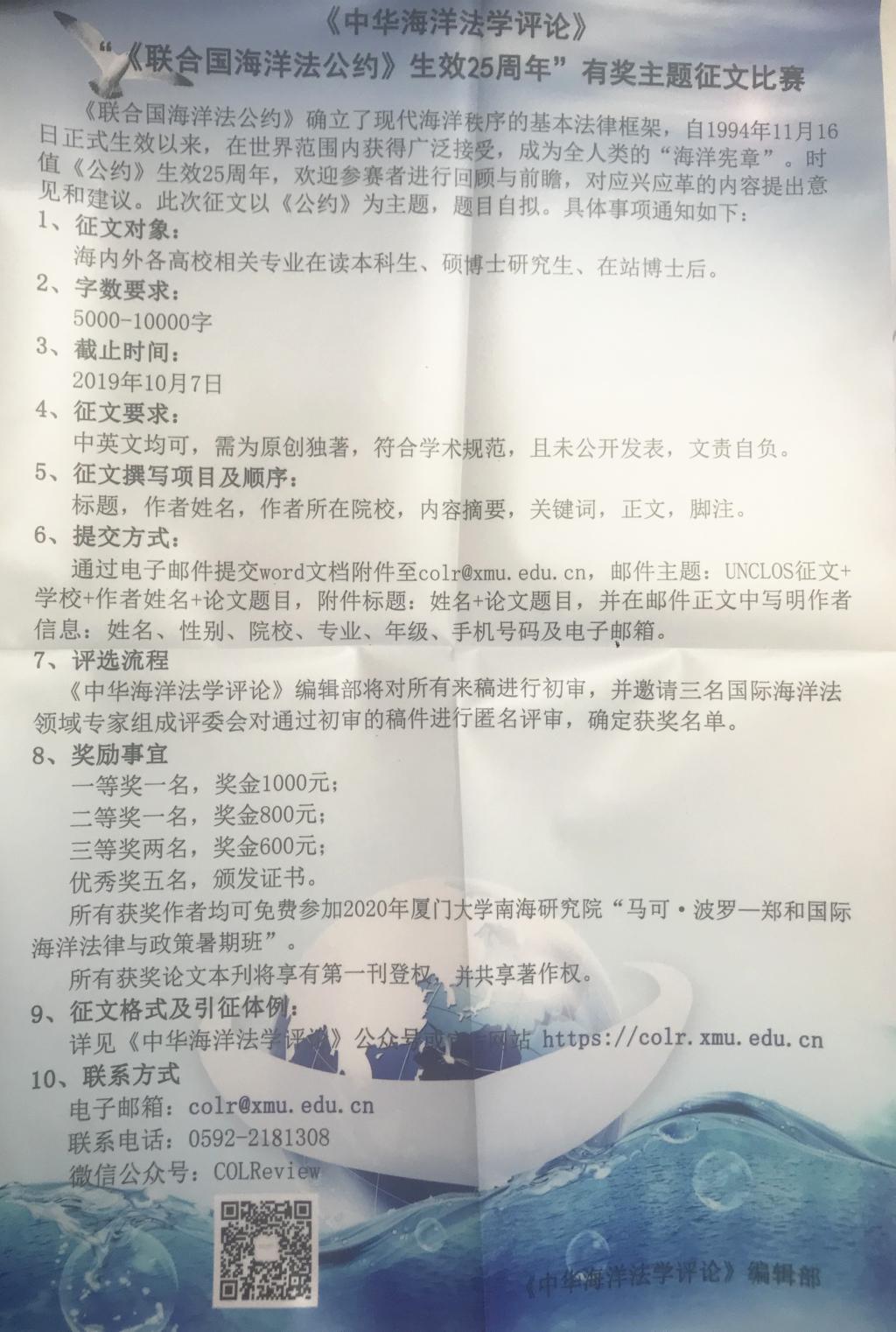 请查看《中华海洋法学评论》编辑部海报(原海报张贴在东荣A座7楼线上赌博 公告栏),请线上赌博 同学积极参与征文,征文详细内容请查看海报内容。