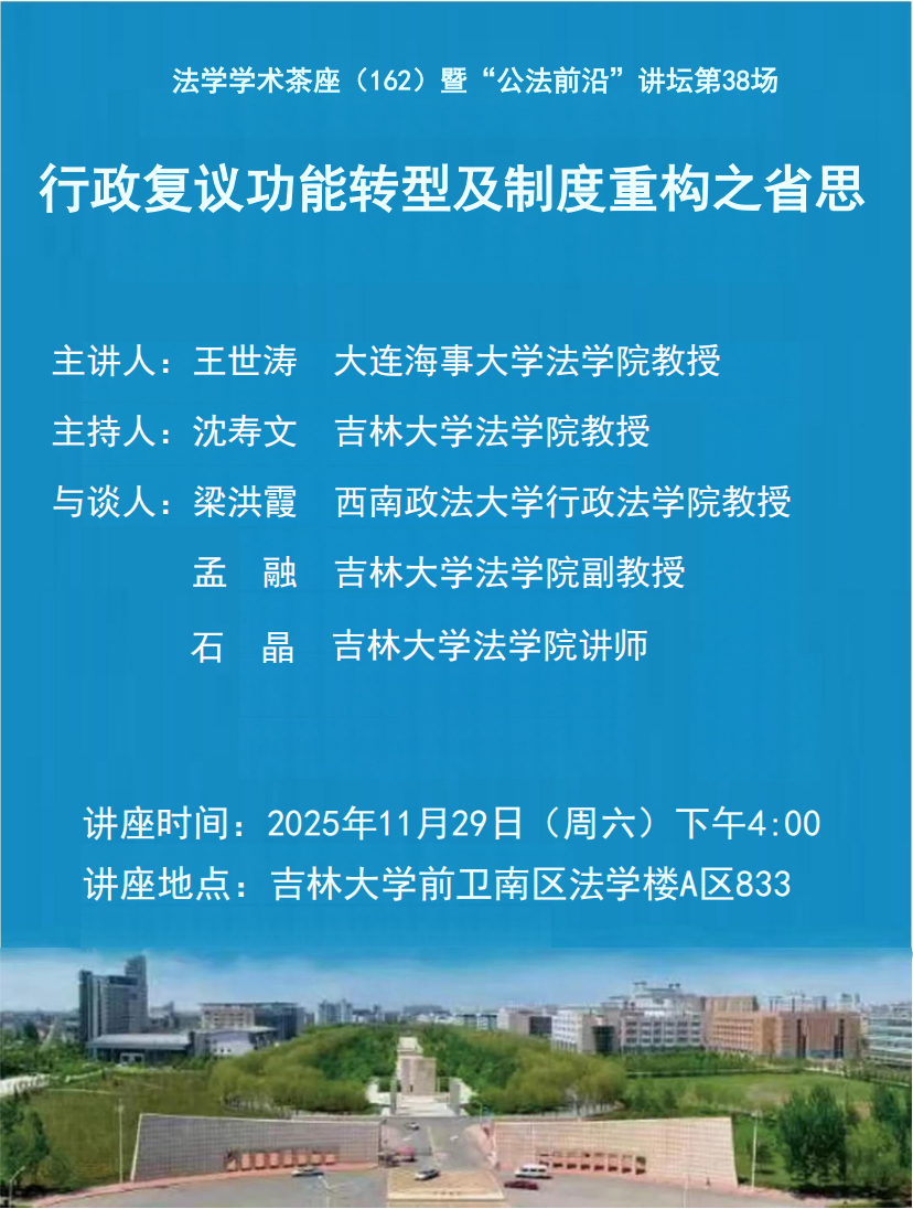 上一篇:中央财经大学赵玉教授做客线上赌博 法学学术茶座 下一篇:法学学术茶座(161)暨“公法前沿”讲坛第37场:备案审查效力的全景展开