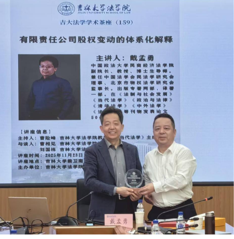 戴孟勇教授以“有限责任公司股权变动的体系化解释”为题,为师生带来一场精彩学术讲座。本次讲座由曹险峰教授主持,曹相见教授、刘国栋副教授参与与谈,线上赌博