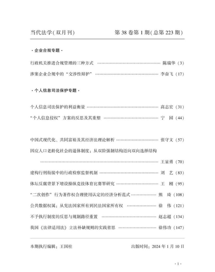 《当代法学》2024年第1期摘要